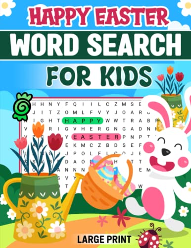 Happy Easter Word Search For Kids with Color Pages: Word Searches with Easy to Read Print about Easter, Spring, and More, 6x9 inches, 75 pages/25 ... Gift for Vacations, Holidays and Free Time