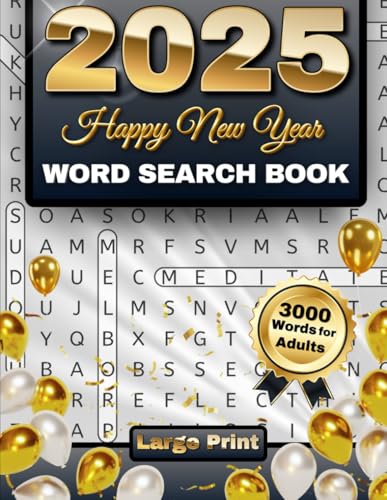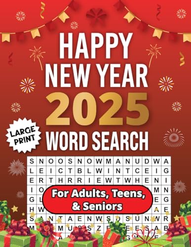 HAPPY NEW YEAR OWRD SEARCH PUZZLE FOR ADULTS AND KIDS: Word Searches with Easy to Read Print about Happy New Year 2025, New Year Puzzles and More | ... | 500+ Puzzles... Gift for vacation, Holidays