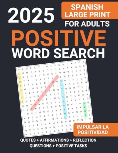 Positive Spanish Word Search Book for Adults and Seniors: Happy mind, happy life, Large Print Puzzles, Sopa de Letras en Español Para Adultos Letra Grande