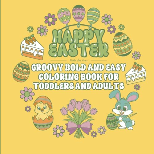 HAPPY EASTER - groovy bold and easy coloring book for toddlers and adults: kids 3-5 | under 5 | teens | eggs | bunny | large print | illustrations ... |simple | relaxing | cute | cozy designs