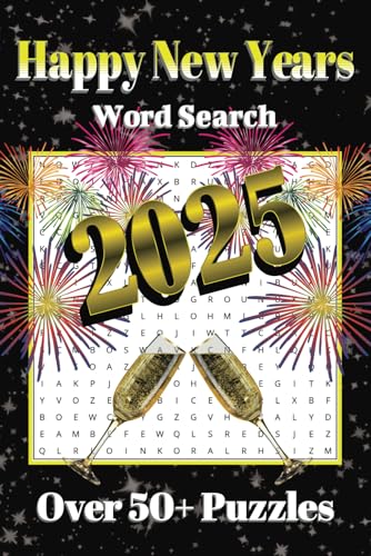 Happy New Years 2025 Word Search Puzzle Book: Word Searches with Easy to Read Print about New Year, Celebrating, Joy and More | 6x9 inches, 110 pages ... Gift for vacations, holidays and relaxing.