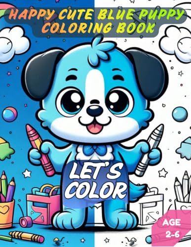 Happy Cute Blue Puppy Coloring Book: 50+ Fun and Easy Coloring Pages for Kids Ages 2-6