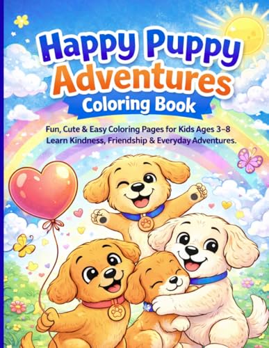 Happy Puppy Adventures Coloring Book: Fun, Cute & Easy Coloring Pages for Kids Ages 3–10 | Learn Kindness, Friendship & Everyday Adventures