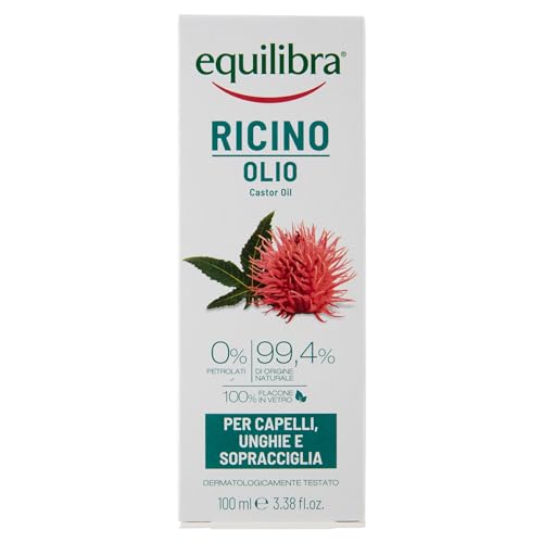 Equilibra Hår, kallpressande ricinolja, ricinolja för hår, naglar och ögonbryn, naturligt rik på antioxidanter och vitamin E, dermatologiskt testad, 100 ml