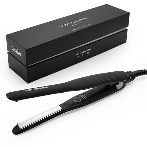 Corioliss plattång Mini C-Slim Extra fina titanplattor | Perfekt för fransar och kort hår | Män och kvinnor | Jonisk | Anti-frizz Svart