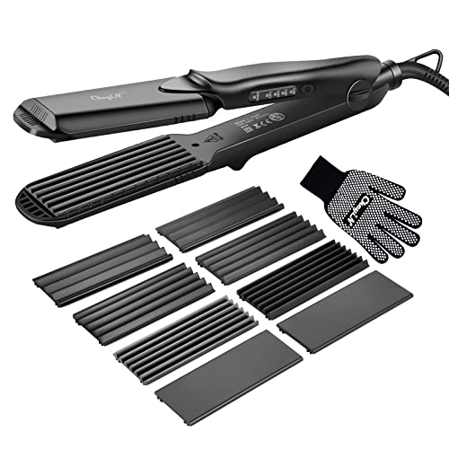 Kräppjärn för hår, CkeyiN 4-i-1 plattång kräppjärn multistyler keramisk plattång och vågjärn hår temperaturkontroll snabbuppvärmning för rakt och presshår