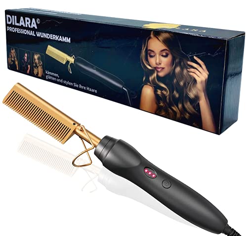 Premium Professional Mirakelkam 2 i 1 plattång I keramisk hår- och plattborste för lockning, plattning, kamning och styling av hår I Hot Heat Comb Hair straightener för kvinnor och kvinnor (guld)