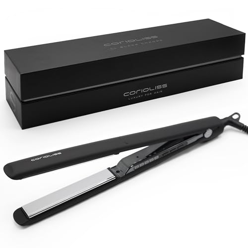 Corioliss C3 | Plattång för kvinnor | Titanplattor och teknologi för fint hår | Professionell plattång med temperaturkontroll (Black Chrome Soft Touch)