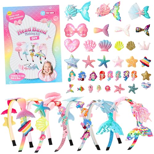 Friedwohl-hårband flicka, 6 stycken sjöjungfru hårband pysselset barn kreativa hårsmycken hantverk gåvor gör-det-själv pyssel hav hårtillbehör födelsedagspresent från 4–12 år