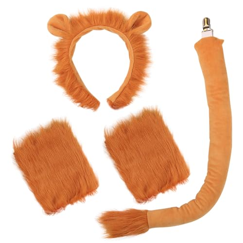 SKHAOVS Lejon kostym set lejonöron pannband, lejonsvans, pälsiga handskar, lejonkungen hårband set, för barn och vuxna cosplay födelsedagsfest maskeraddräkter (lejon)