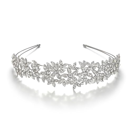 IYOU Kristall Brud Hår Skruv Silver Blad Bröllop Hårband Pärla Blomma Brudtärna Hårtillbehör för Kvinnor