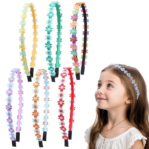 6 stycken hårband flicka hårband, färgglada tusensköna pannband hippie blommor pannband, blomma krona fe huvudbonad söt och söt dekoration hårtillbehör för barn hårsmycken