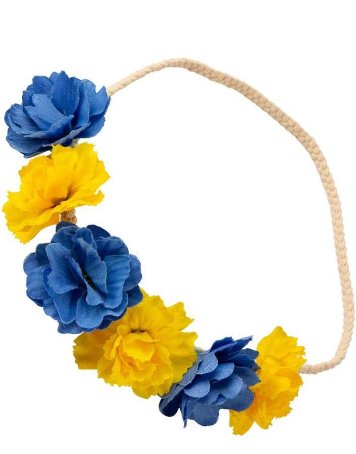 Mizzy Whole Hårband Brunt med gröna blad & blå blommor till Midsommar