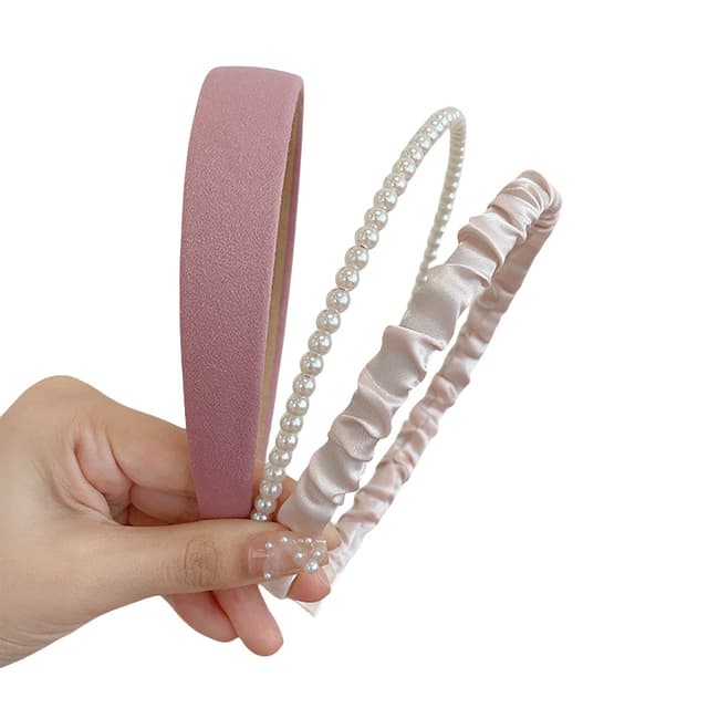 Elegant Pearl Pannband för Dam Hårband 3 Styck Rosa