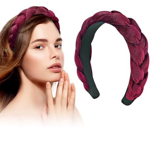 LOPHE Hårband, dam, sammetshårband flätat pannband, pannband brett rött vin hårdekoration, vintage vadderade pannband, pannband för kvinnor och flickor