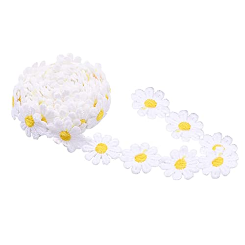 5 yards, 2,5 cm, syapplikation, blomma, broderi, spetsband, tyg, tusensköna, polyester, blomma, band för hårband, kläder (gul, vit)
