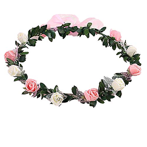 Brussels08 Elegant Rosa Blomma Pannband Krans Fest Bröllop Brud Girlang Hårband Huvudbonad Rosa + Vit