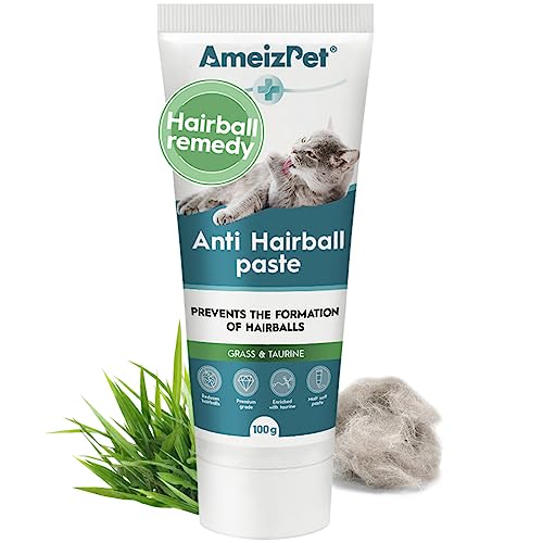 AmeizPet Hårbollslösning för Katter, Anti-Hårboll Maltpasta för Päls, Behandling för Katter med Lång & Kort Päls med Taurin & Gräs, 100g (3.52 Oz)