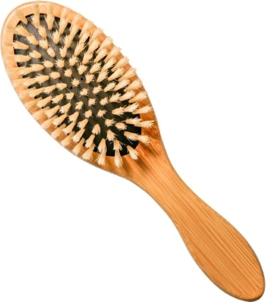 Vildsvinsborst hårborste naturlig bambu paddel för män, kvinnor och barn ger glans och gör håret slätt