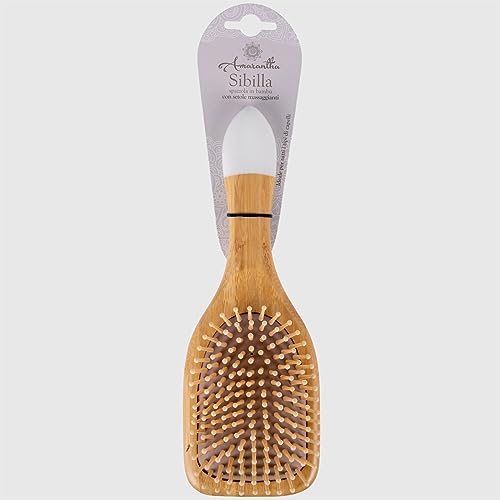 La Briantina Sibylla hårborste i bambu, gummikudde och nålborst i bambu, 24,5 x 8,5 cm