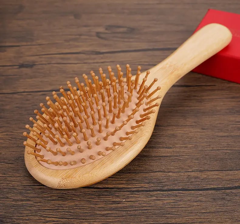 Trämassage borste hårbotten massage kam, bambu hårborste förbättrar hårets hälsa (utjämningsborste)