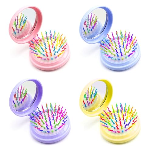 Mini hårborste med spegel, vikbar resehårborste hopfällbar hårkam bärbar kompakt fickstorlek antistatisk hårborste för lockigt tunt långt kort vått torrt hår