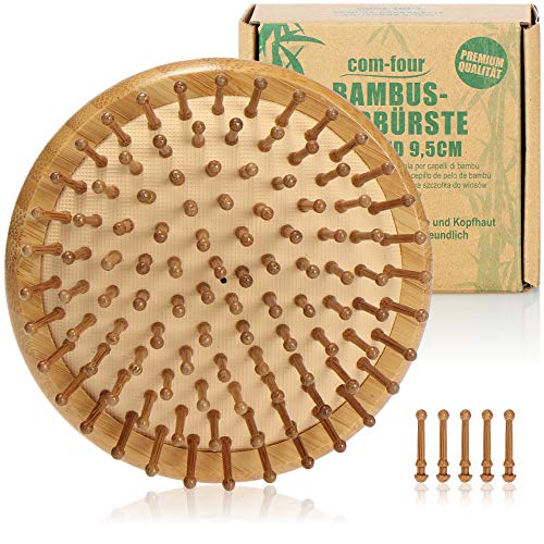 COM-FOUR® Premium bambu hårborste, detangler hårborste gjord av bambu trä, liten rund detangling borste mot matt hår, för alla hårtyper (1 stycke - Tangle brush)