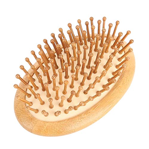 Liten Hårborste i Trä - Oval Antistatisk Mini Ficka Resa Paddel för Hårbotten - Handstorlek Skötselverktyg för Män Kvinnor Barn Med Tjockt Lockigt Hår
