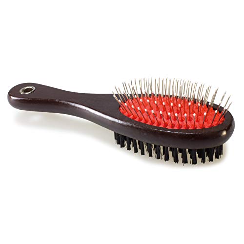ARQUIVET Dubbelborste i trä för hundar - 22 x 5,5 cm - Hundhårvård - Produkter för borstning av hundar - Pälsvård för husdjur - Hårborttagare