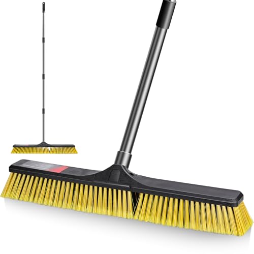 MASTERTOP Slitstark trädgårdskvast, långt handtag gårdsborste med 61 cm brett borsthuvud, styv hård borste för sopgård, trädgård, uteplats, uppfart, utomhus borste skrubberkvast – gul