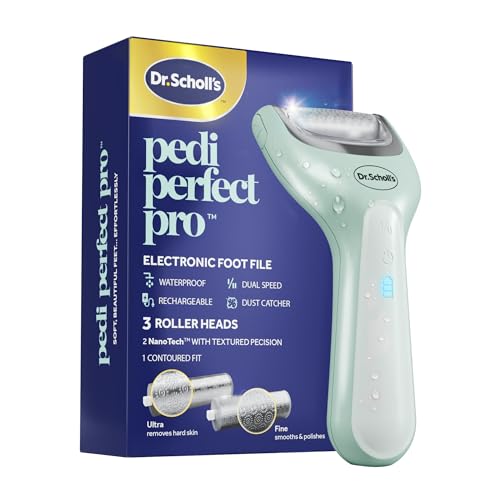Scholl 2-i-1 jämnar ut och mjukar upp begränsad upplaga, elektrisk pedikyr för spruckna fötter och klackar, 3 dubbla actionhuvuden ingår, professionell fotrasp, tar bort hård hud och förhårdnader