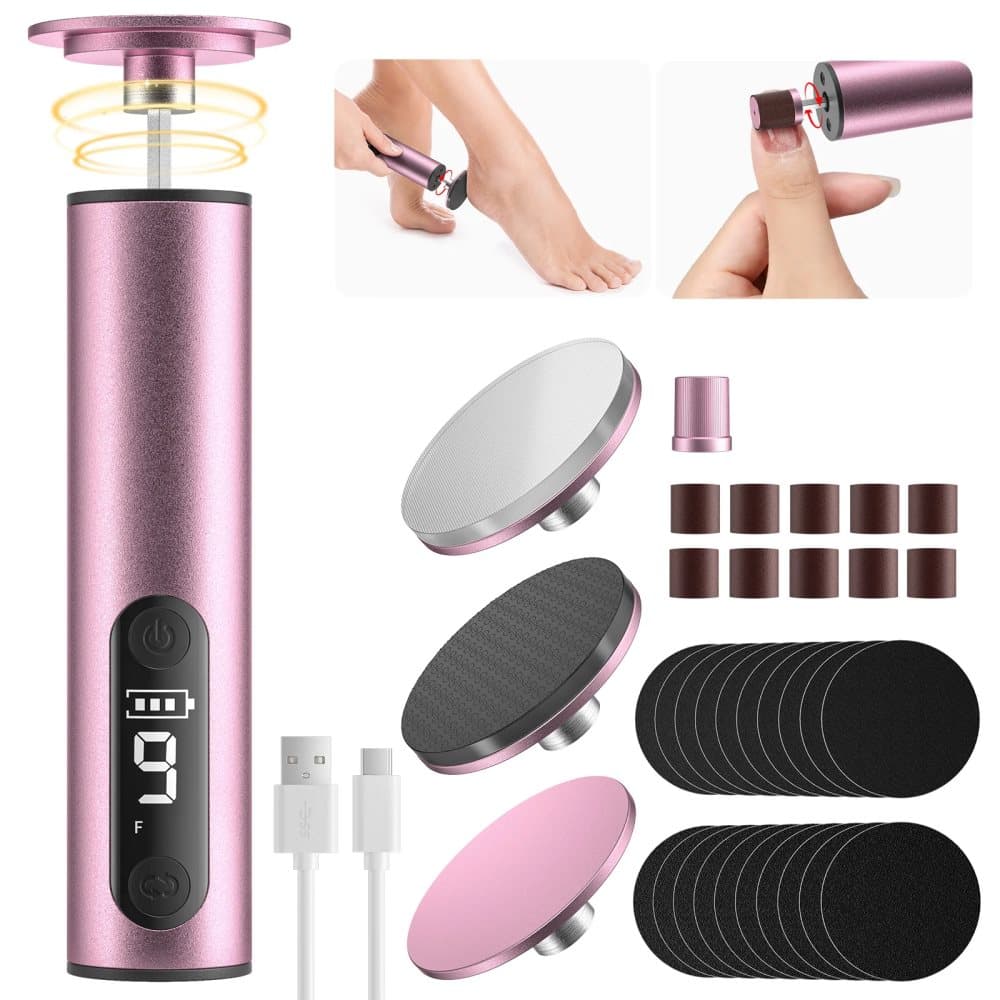 Elektrisk fotfil & förhårdnadsborttagare - Handhållen pedikyrfil - Återuppladdningsbar - Exfolierar hård hud - Rosa