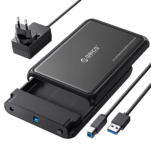 ORICO USB 3.0 externt hårddiskhölje för 3,5/2,5 tums SATA hårddiskar/SSD upp till 16 TB, 3,5 tum verktygsfritt HDD-hölje med 12 V/2 A strömförsörjning och UASP-acceleration (3588US3)