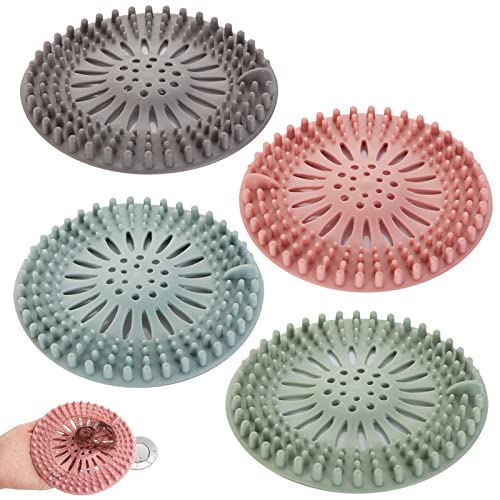 4-pack avloppshårfångare, silikonhårstoppare badkar handfat filter, duschavloppsskydd filter hårfälla, hårfångarplugg hål handfat sil skydd för badrum och kök (4 färger)