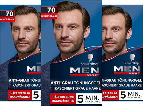 Schwarzkopf Män Perfect Anti-Grå toning Gel 70 mörkbrun (3 x 80 ml), hårfärg för män bländar grått hår, anti-grå nyans för ett naturligt resultat