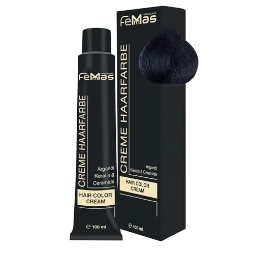 FemMas Hårfärg, blå-svart 1.1, professionell färgkräm med arganolja, keratin och ceramider, permanent färg eller toning för långvariga resultat, 100 ml