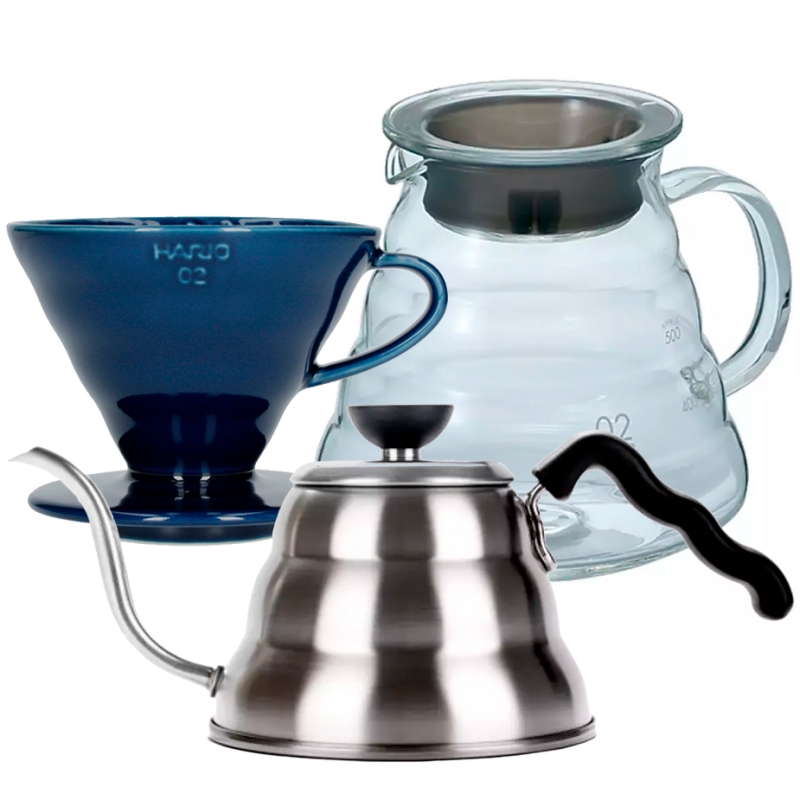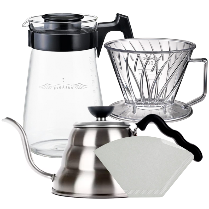Hario Pegasus 02 Server 600ml Inkl. Pappersfilter 02, Plast Dripper 02 & V60 Kettle Buono 100 1 L Stål