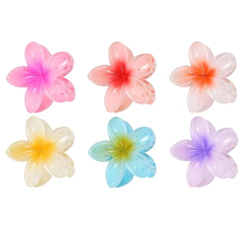 Aucuu 6 st halkfria blomklämmor, starkt grepp hawaiiansk kloklämma, akryl hårklämma för medium tjockt hår, plumeria blomma hårklämmor, Hawaii hårtillbehör för kvinnor och flickor