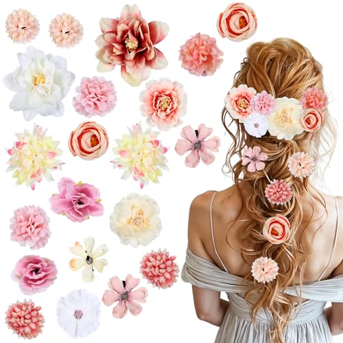 Tyqour 21 st blomma hårklämma blomma hårklämma för semester vid havet, flerfärgad blommor hårklämma boho hårklämma blomma hårsmycken hårspännen med Hawaiianska rosor hårnålar för flickor kvinnor