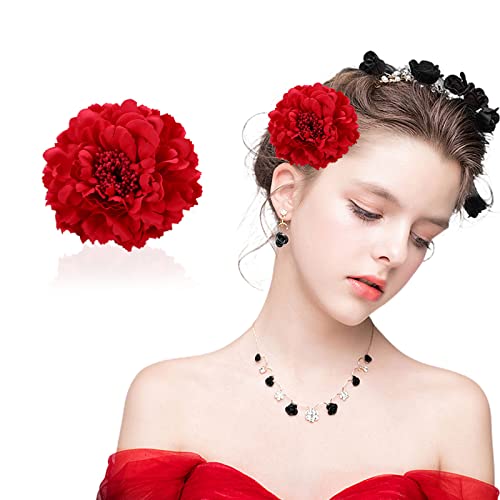 VIKSAUN Blomma hårklämma pion hårnål dansare pin up blomma brosch bröllop brudtärna håraccessoarer bröllop bal fest speciellt tillfälle vintage fascinator ros röd (röd)