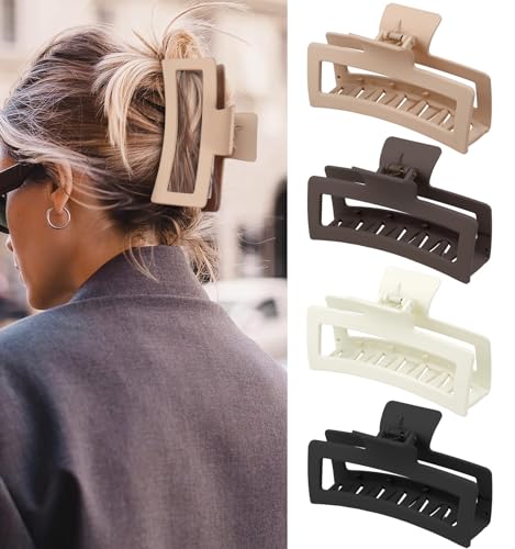 4 stycken hårklämmor dam stor, fransk hårklämma rektangulär hårklämma för tunt och tjockt hår