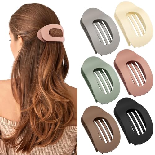 Tumurup hårklämmor dam 6 färger | halkfria stora platta hårklämmor & platt Claw Clip | franskt matt elegant för vardagen, sport, körning