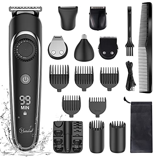 Hatteker skäggtrimmer hårklippningsmaskin män hårklippare vårdset elektrisk rakapparat rakapparat mustasch näsa öra kropp precisionstrimmer groomer IPX7 vattentät uppladdningsbar 6 i 1