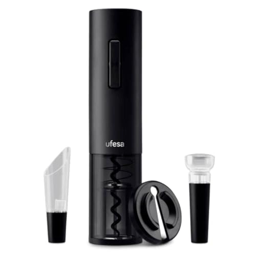 Ufesa EasyOpen korkskruvsats Elektrisk flasköppnare, karaff, vakuumlock, hårklippare och förvaringsbas, USB, LED-lampa
