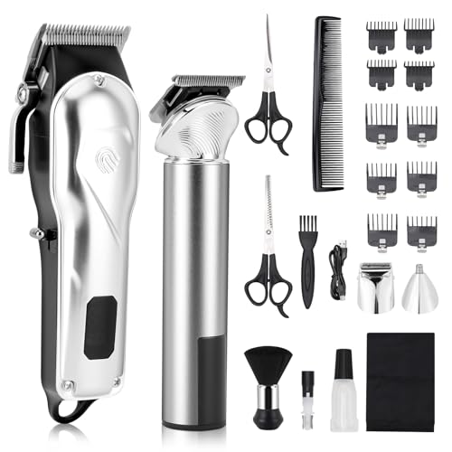 SUPRENT Professionell hårklippare, elektrisk skäggtrimmer, trådlös hårklippare för män, barn, kvinnor, skötselsats, LED-display, påfyllningsbar (silver)