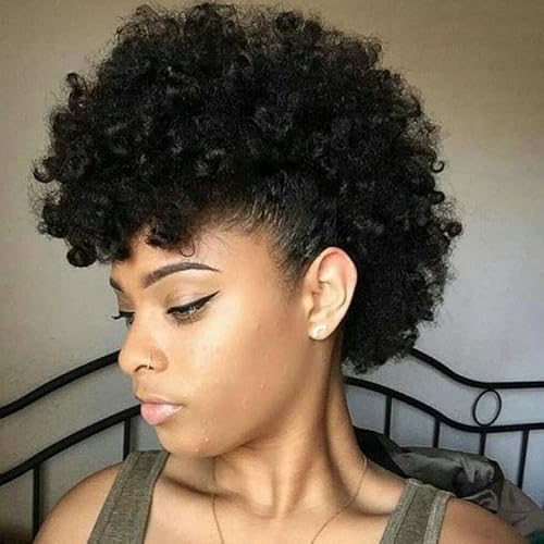 Afro Puff Mohawk Hästsvans kort afro kinky lockigt hår hårknut hårförlängningar med 6 BB-klämmor Jerry lockig icke-dragsko hästsvansklämma i syntetiska Fauxhawks afro puff bulle med lugg (svart)