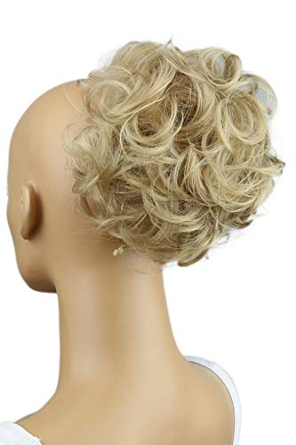 FESHFEN Rörig Hårbun Hårknut Vågiga Lockiga Chignon Bulle Hästsvans Svart Brun Syntetiska Hårbullar Lockigt Hår Extensions Hårstycke för Kvinnor, 42g Champagneblond & Vitblond