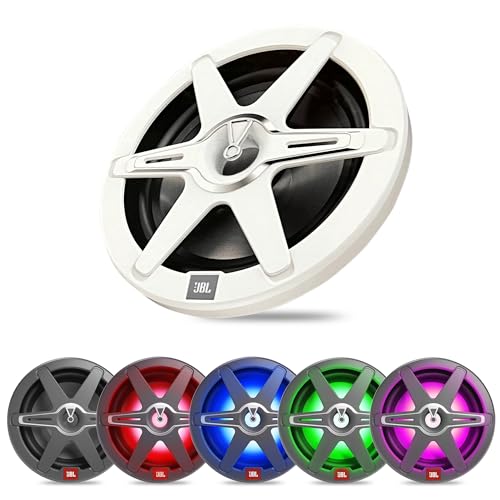 JBL Club Marine 6 1/2 tum högtalare – 2-vägs högpresterande 225 W marin högtalare av Harman Kardon, IPx5 marin stereo med silkekupol-diskant, 7 färger RGB-belysning, 2 grillfärger ingår