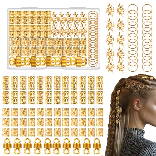 Kieswan 100 stycken Dreadlocks smycken viking hårsmycken guld, metall hårringar för flätor, justerbara manschetter, hårpärlor, hårspiraler för flätor, tillbehör dekoration