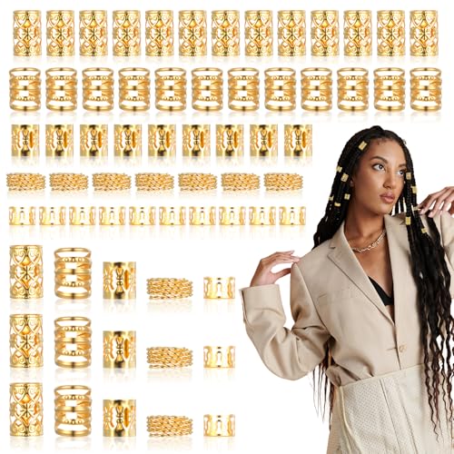 Ouligay 110 st guldfärgade hårsmycken för kvinnor flätor, guld hårringar manschettberlocker för flätor, loc smycken för dreadlocks tillbehör dekorationer för kvinnor flickor män